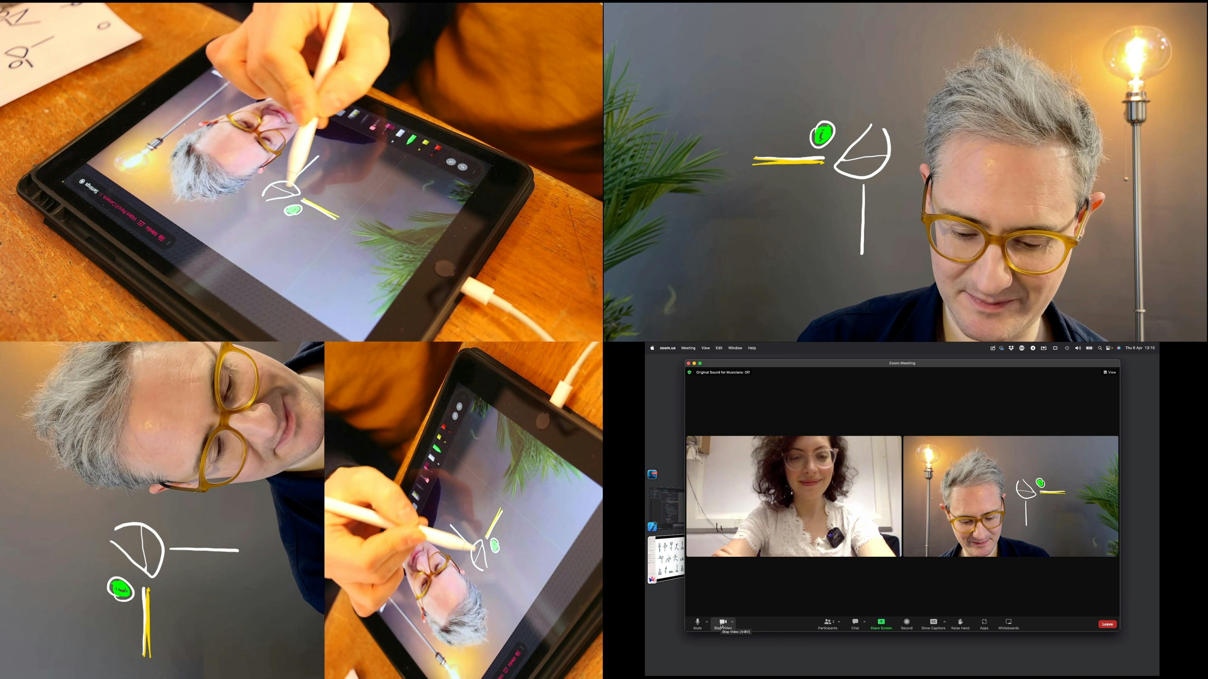 And here’s what that looked like with all the video sources. I had a wide on the iPad, a wide of myself and a wide screenshare, and then a baked-in crop to my main angle and iPad angle to rotate in to a vertical format.