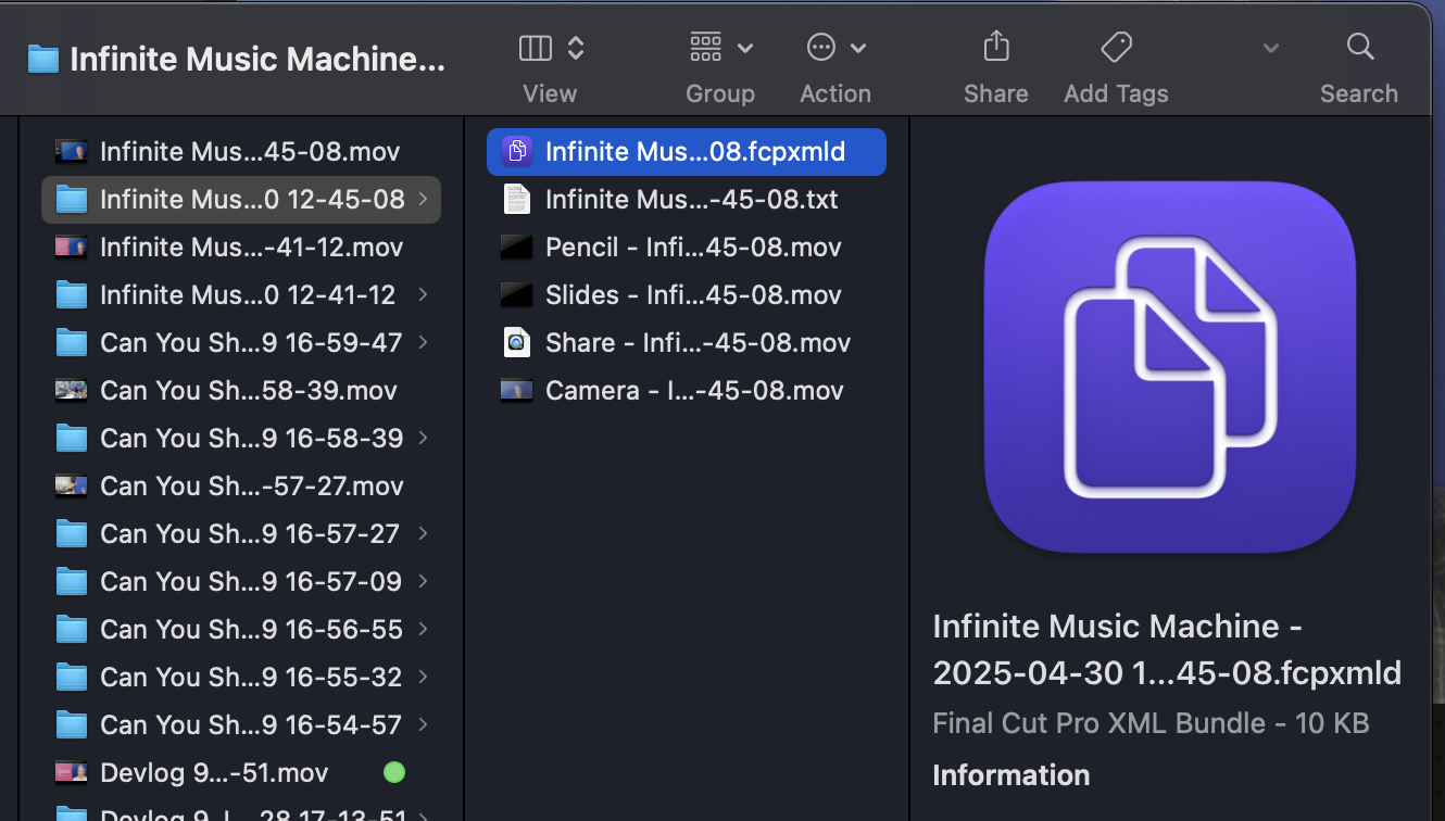 If you use Final Cut, you can find a Final Cut timeline in the recording’s folder.